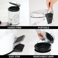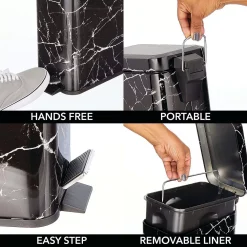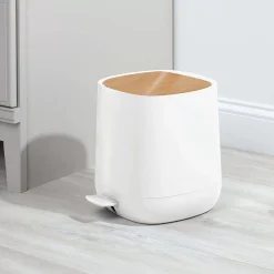 MDesign Oval Slim Plastic Small Trash Can Wastebasket – White/Chrome