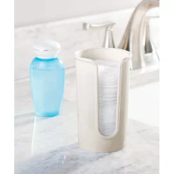 MDesign Small Plastic Disposable Paper Mouthwash/Rinsing Cup Dispenser – Cream