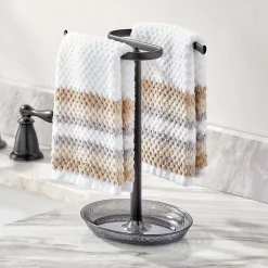 MDesign Steel Bathroom Towel Rack Holder Stand With 2 Hanging Rings