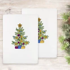 Linum Home Textiles Christmas Kisses Embroidered Luxury Turkish Cotton Set Of 2 Hand Towels
