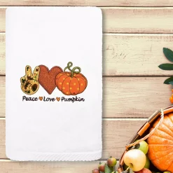 Linum Home Textiles Peace, Love, Pumpkin Embroidered Luxury Turkish Cotton Hand Towel