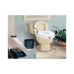 Carex 3.5 Inch Raised Toilet Seat With Arms – For Round Toilets – Elevated Toilet Riser With Removable Padded Handles, Easy On And Off, Support 250 Lbs
