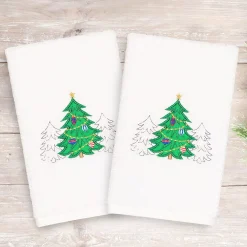 Linum Home Textiles 2-pack Christmas Three Trees Embroidered Hand Towel Set