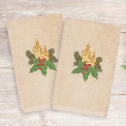 Linum Home Textiles Christmas 2-pack Candles Embroidered Luxury Turkish Cotton Hand Towels