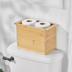 MDesign Natural Wood Bathroom Roll Holder Storage Organizer Basket – Natural
