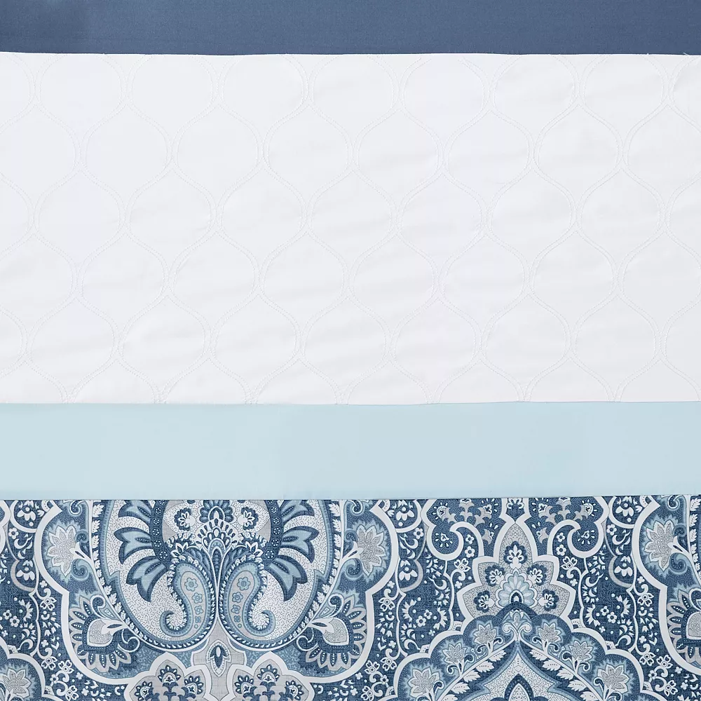 The 510 Design Josefina Geometric & Damask Printed Embroidered Shower Curtain adds a sophisticated flair to your bathroom decor.