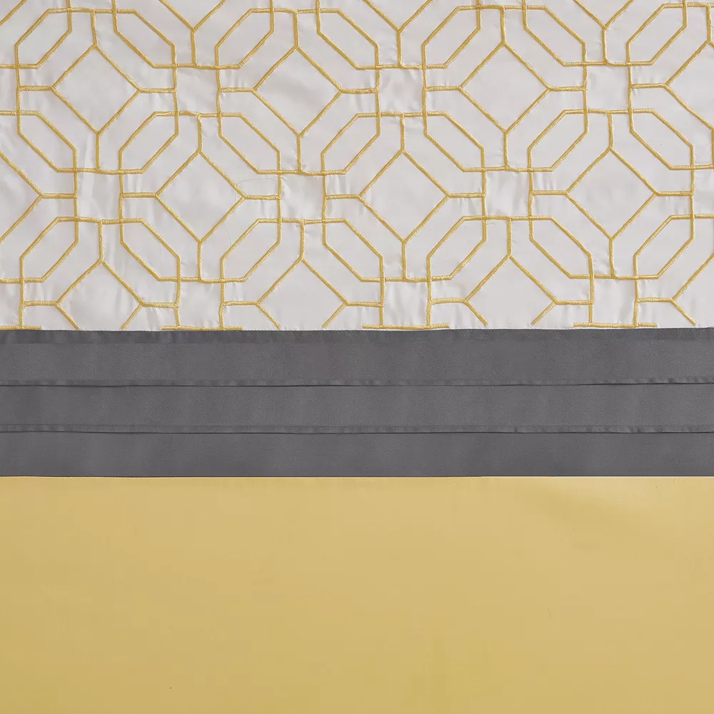Add a high-glam look to your existing shower with this 510 Design embroidered and pieced shower curtain.