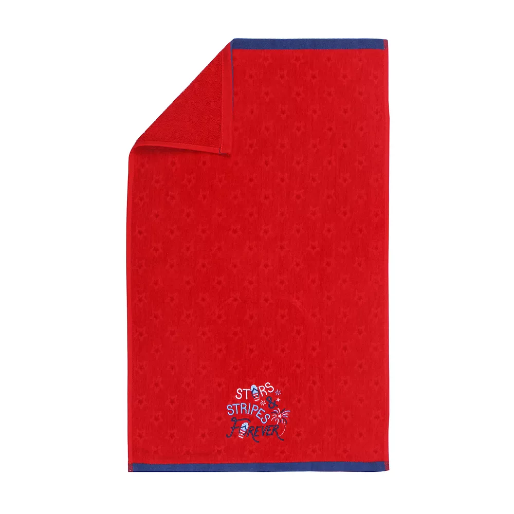 Add a pop of color to your space with this red, white, and blue stars and stripes hand towel.