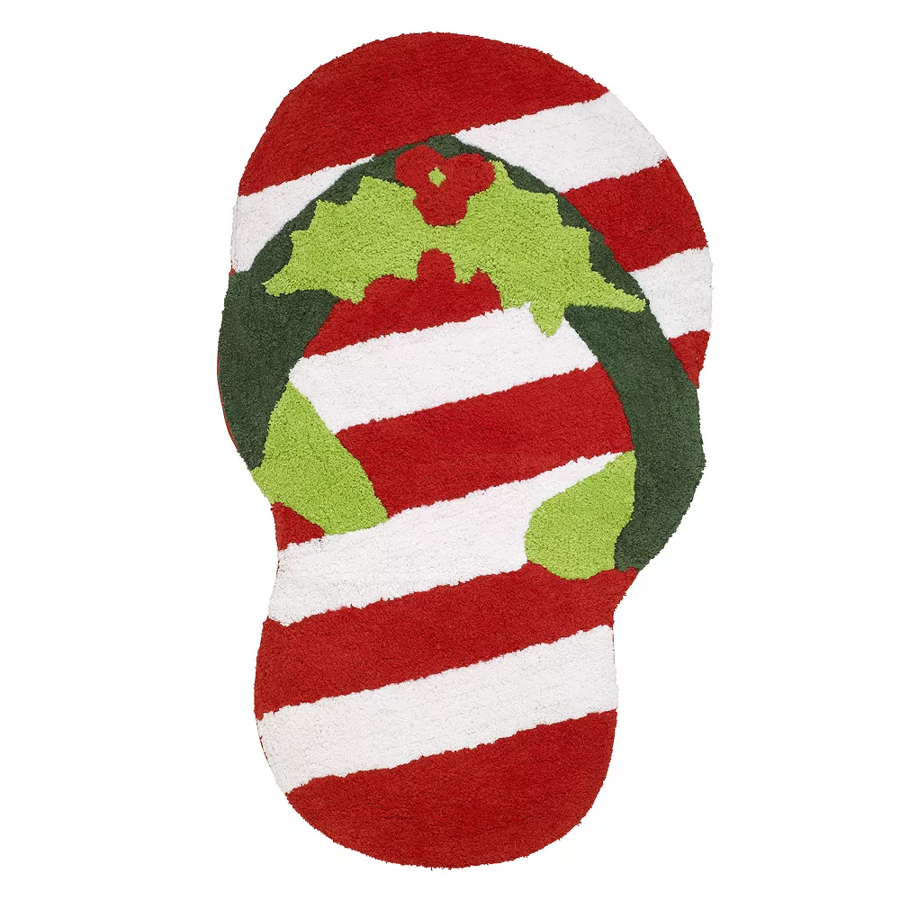 This fun and festive Avanti Flamingo Jingle bath rugcombines a charming holiday motif with sunny beachside vibes.