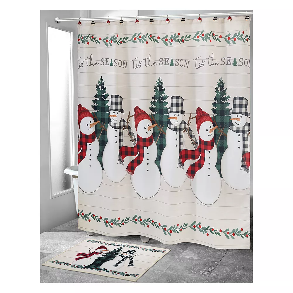 Add a fun and festive touch to your bathroom decor this holiday season with this Avanti Rustic Pals snowmen shower curtain.