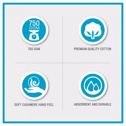- 2 Bath Towels: 30″W x 54″L; 2 Hand Towels: 16″W x 28″L; 2 Wash Towels: 13″W x 13″L