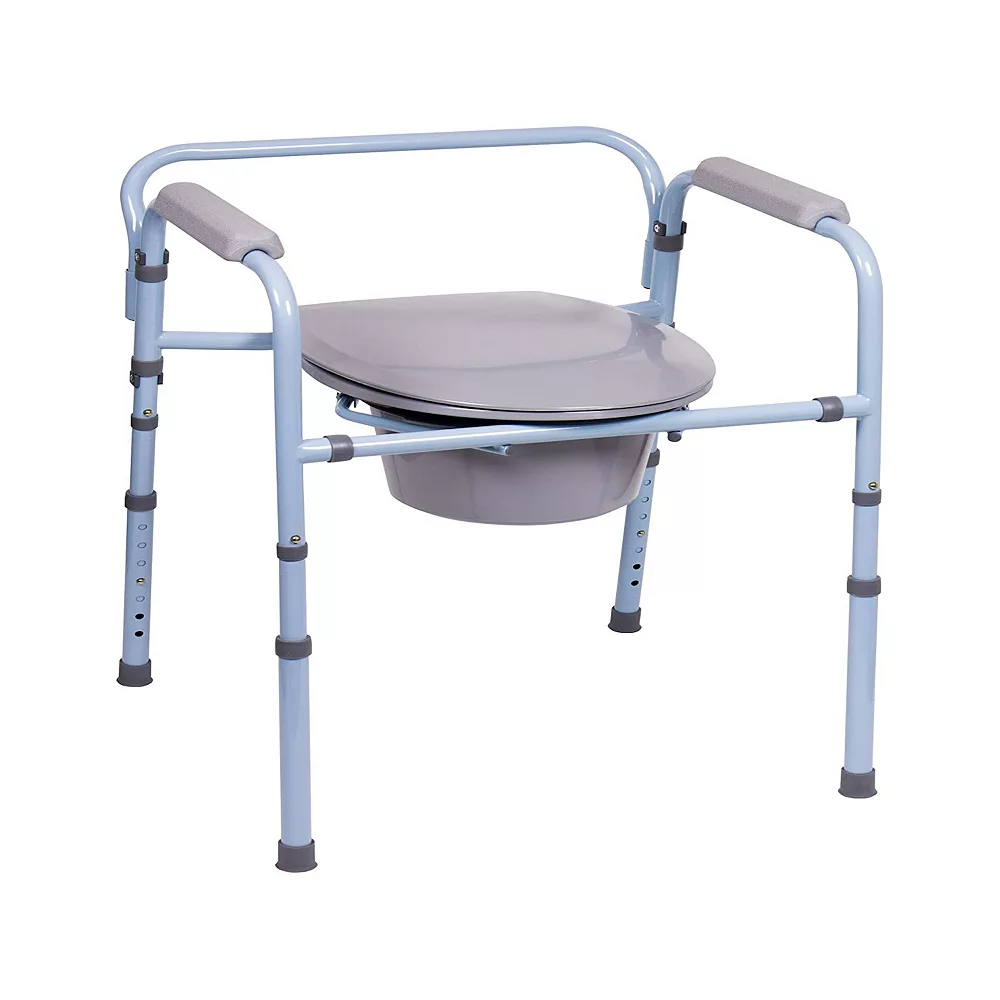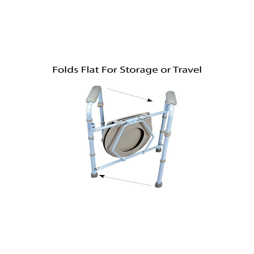 - FOLDS EASILY. Commode chair easily folds for transportation and storage, making it an ideal portable potty to take on the road. Toilet chair is great for elderly seniors and young children and can also be used as a handicap toilet for the disabled.