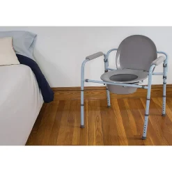 Carex Folding Bedside Commode – Porta Potty for Adults – Portable Toilet for Camping The Carex Folding Bedside Commode is the perfect solution for those who have limited space. This full-size steel commode folds compactly, making it easy to store and ideal for camping and traveling. Toilet features a comfortable elongated seat perfect for an adult bedside commode, a camping toilet, or for a porta potty while traveling. Commode supports weight up to 300 lbs. Folding porta potty comes complete with a commode bucket, cover and splash guard. It also includes a free clip-on Toilet Paper Holder and trial pack of our Commode Liners. Portable toilet can be used three ways – as a stand alone commode, toilet safety frame or raised toilet seat. Commode dimensions are 22 x 18.5 x 16. Product weighs 8.5 lbs. and supports weight up to 300 lbs. Carex is a leader in home health care equipment.