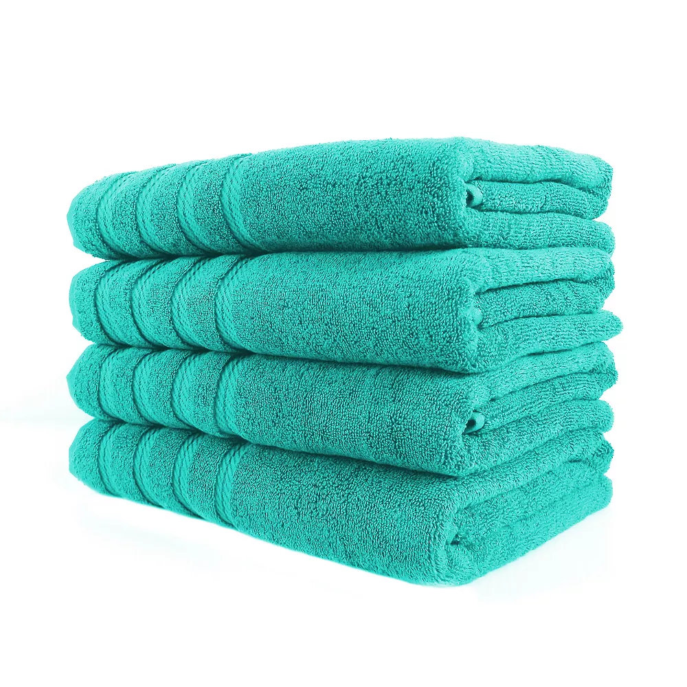 - INCLUDED: This convenient set comes with four identical bath towels that are each 27 by 51 inches. Keep both your bathrooms stocked with these soft and highly absorbent towels that also make great gifts.