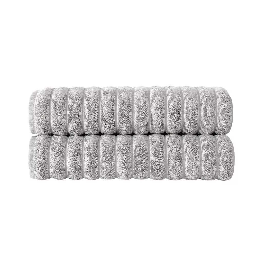The Brampton Collection features luxurious hotel and spa-quality bath towels, bath sheets, hand towels, washcloths, and bath mats for your home. This set of two Turkish cotton bath towels will bring elegance and comfort to any bathroom. These 27 by 54-inch towels are made with a stunning ribbed Jacquard design that beautifully accents the style of any home. Feel the lush softness when you dry your body, face, and hair with these large towels. The high-quality cotton fibers allow for maximum absorbency, ensuring these towels dry quickly between uses. All our towels are easy to clean and care for. To extend the longevity of your towels, simply machine-wash in warm or cold water. Avoid bleach and fabric softener. All our bath products are manufactured and imported directly from Turkey, using only premium 100 percent Turkish cotton that is plush, durable, and soft. Turkish cotton is prized for its long-lasting soft texture which naturally grows in longer, more narrow fibers. This results in more threads per square inch and a naturally softer texture. Complete your bathroom look with the entire Brampton Collection towel set from Classic Turkish Towels.