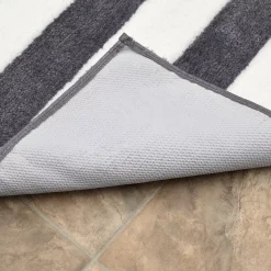 Add a pop of color and stylish design to your bathroom with this beach strip bath rug.