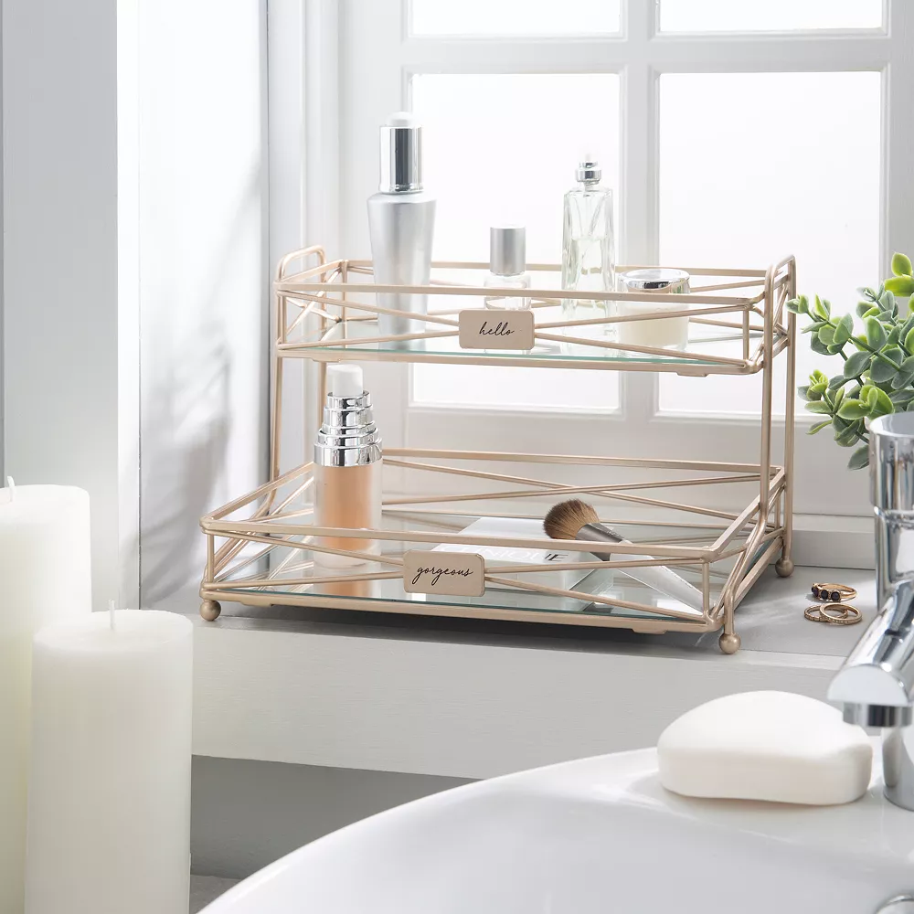 Create an organized and stylish space with this Home Details 2 Tier Vanity Tower in Rose Gold.
