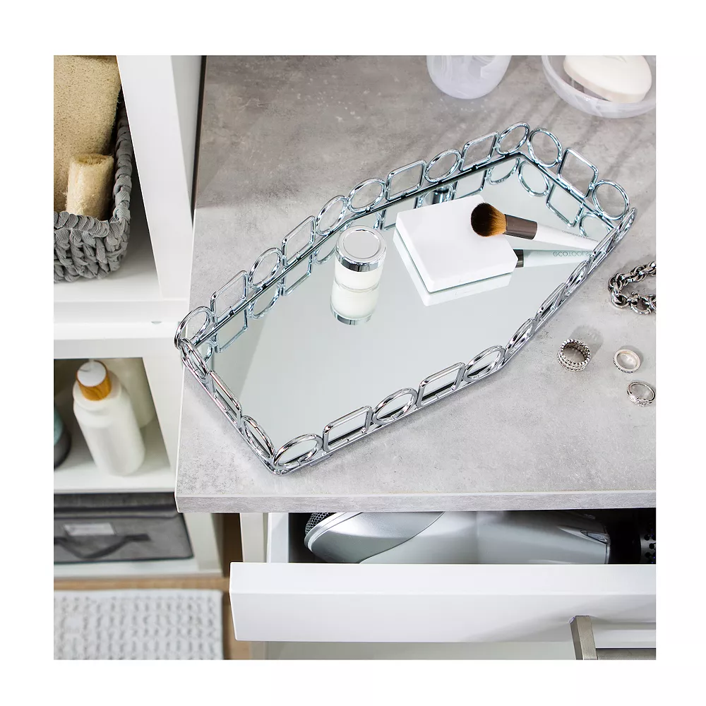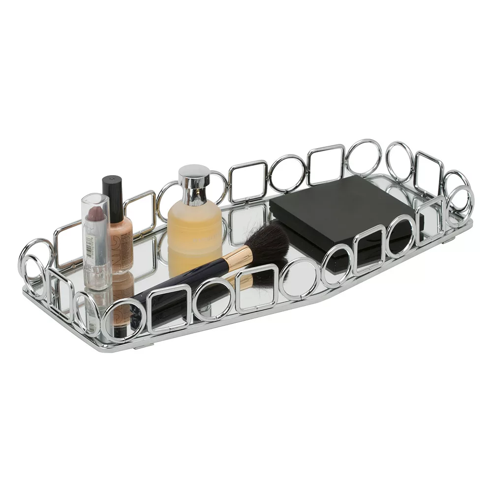 Create an organized and stylish space with this Home Details Circles & Squares Large Mirror Vanity Tray.