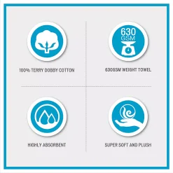 - Included in set: 2 Bath Towels: 30″W x 54″L; 2 Hand Towels: 16″W x 28″L; 2 Washcloths: 13″W x 13″L