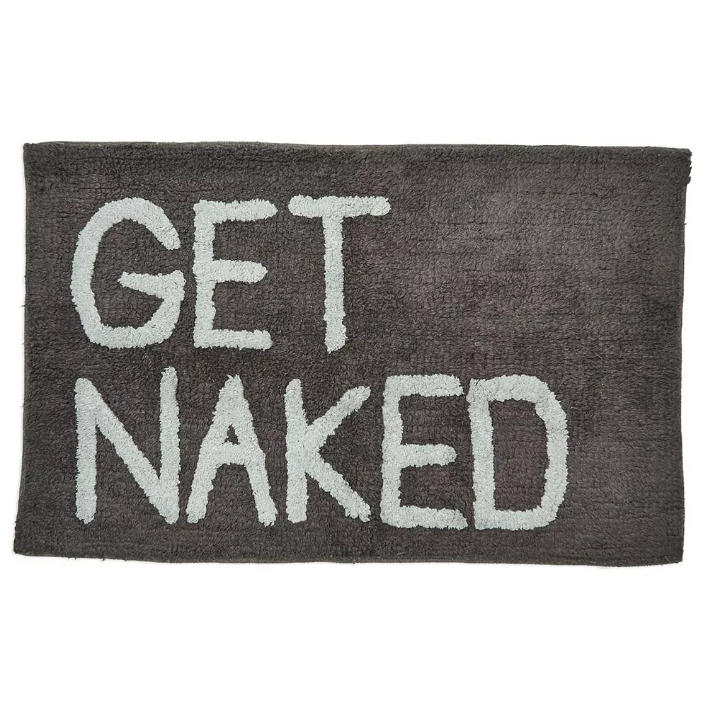 Place this modern bath mat in the bathroom, sauna, or gym to provide your feet with exceptional comfort after a long, stressful day. The cotton and polyester plush bathroom rug measures 33 x 20 inches, perfectly sized to be placed next to the vanity, tub, or in the guest suite. The funny Get Naked saying will instantly personalize and elevate your modern, minimalist, or bohemian bathroom decor.