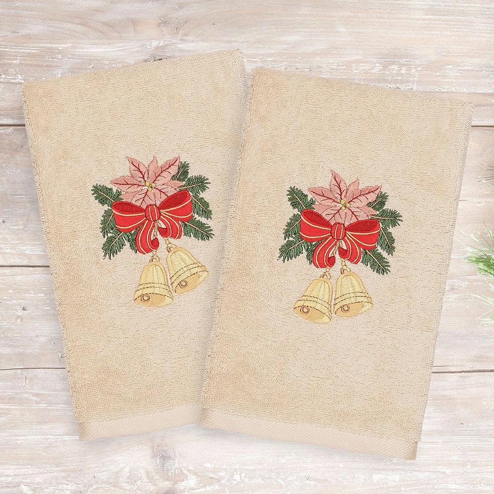 Ensure your bathroom is ready for the holidays with this festive hand towel set from Linum Home Textiles.