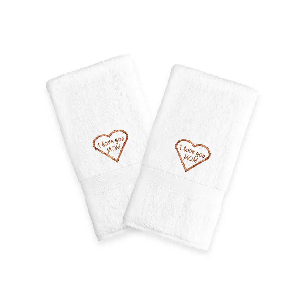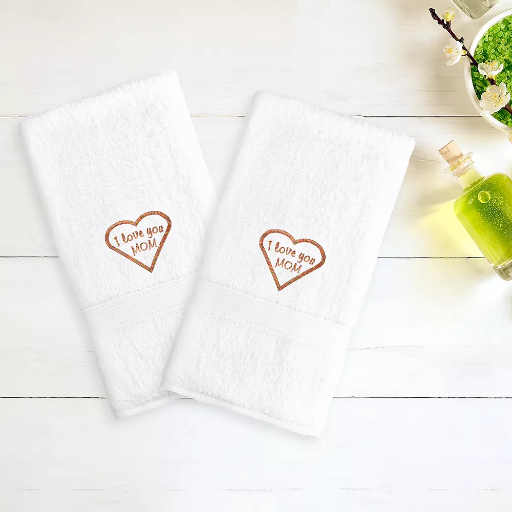 Express your love for mom with these adorable Linum Home Textiles “I Love You Mom” embroidered hand towels.