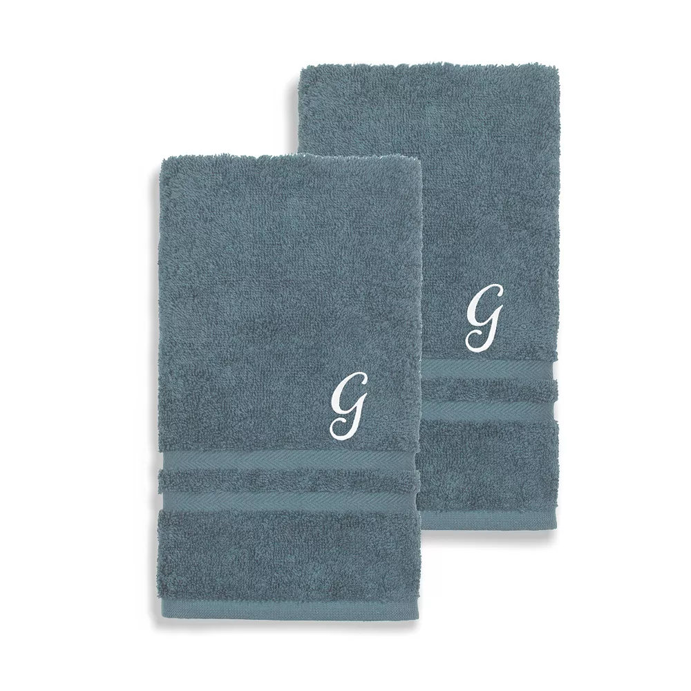 Easily add and elegant look and feel to your bathroom with this Linum Home Textiles Turkish Cotton 2-piece Personalized Denzi Hand Towel Set.