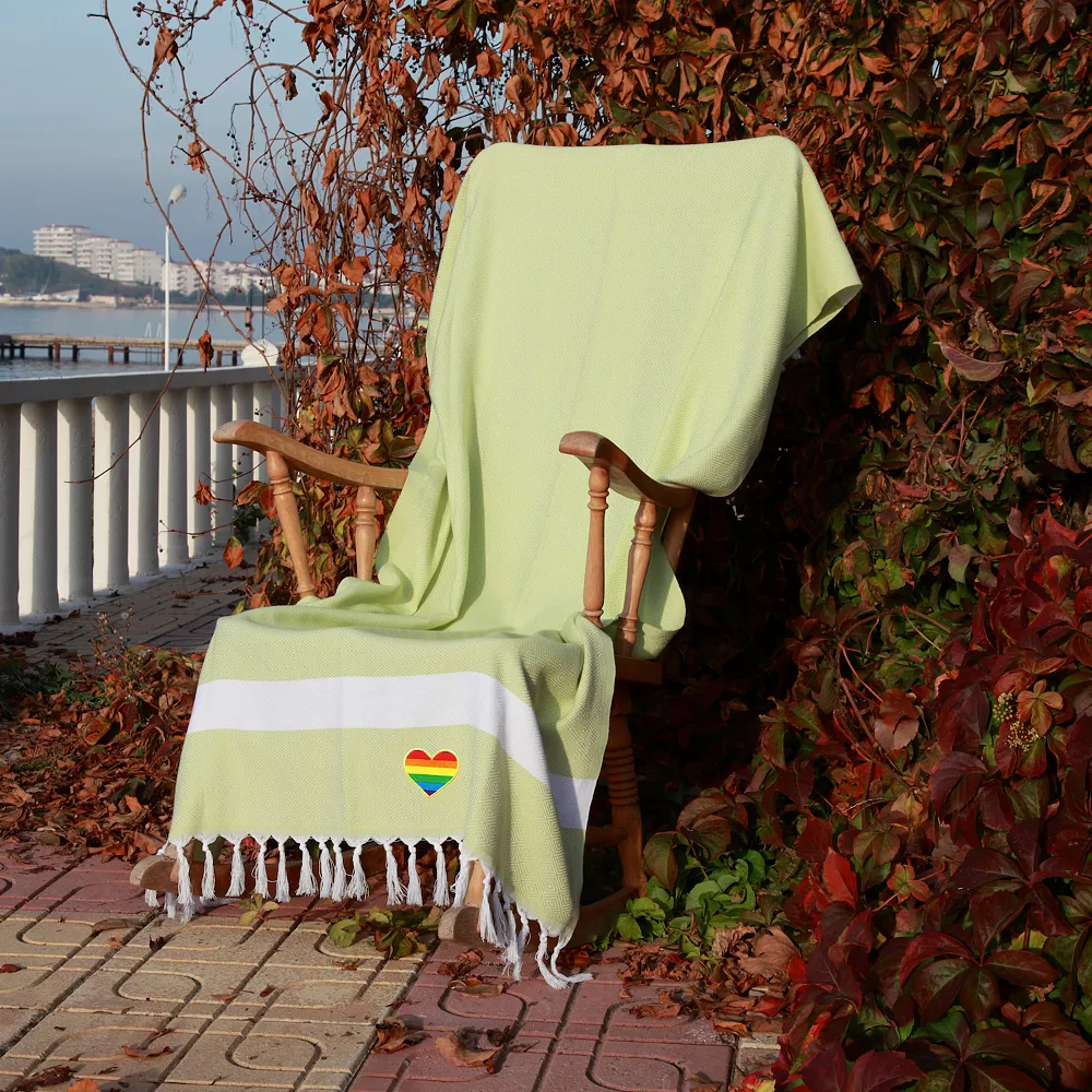 - The Diamond Cheerful Rainbow Heart Pestemal Beach Towel is soft, absorbent, fast drying and easily fits into your bag. This versatile Turkish Cotton pestemal can also be used for picnic or travel, shawl, bath towel and more. This collection makes a great gift for any festive events.