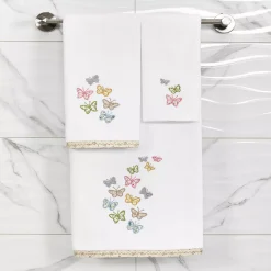 Add a refreshing touch to your space with this set of embellished bath towels from Linum Home Textiles.