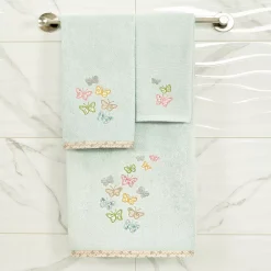 Add a refreshing touch to your space with this set of embellished bath towels from Linum Home Textiles.