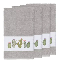 - Features whimsical blooming cactus in applique embroidery on a woven textured border