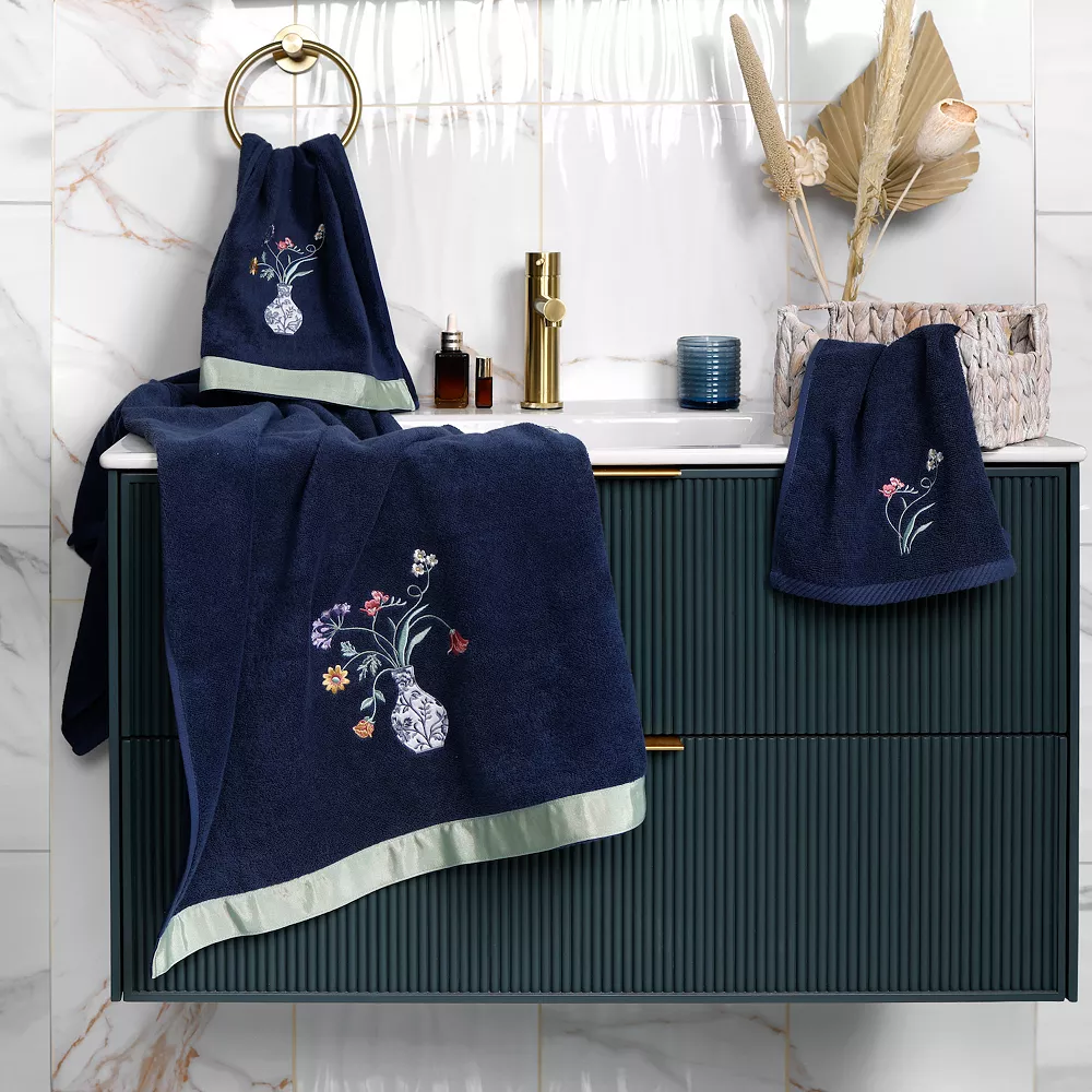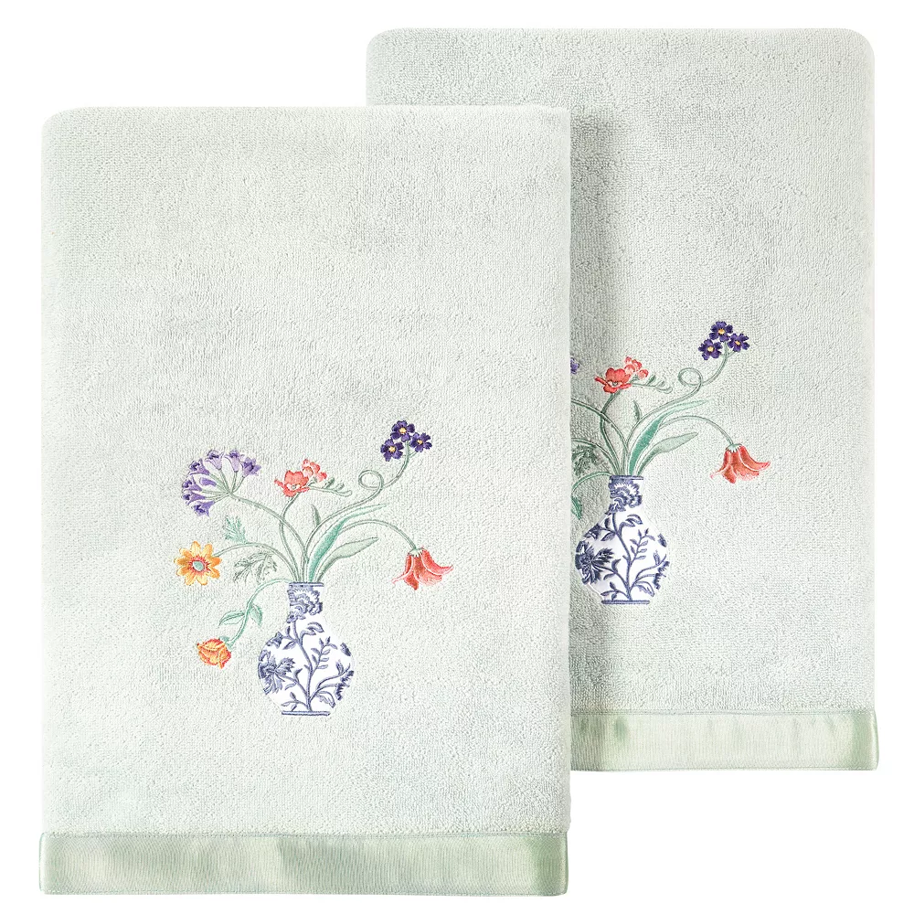 Add a refreshing touch to your space with this set of embellished bath towels from Linum Home textiles.