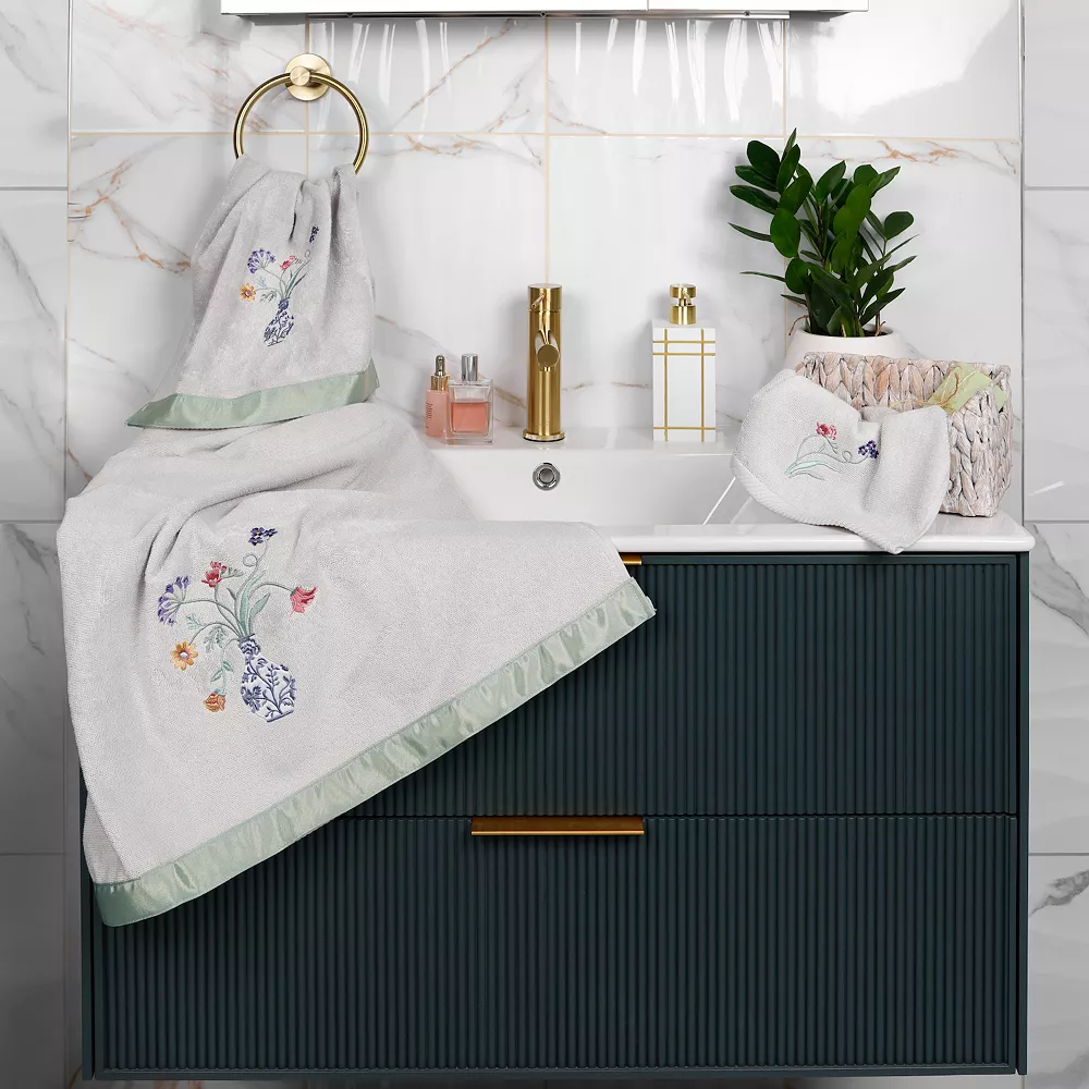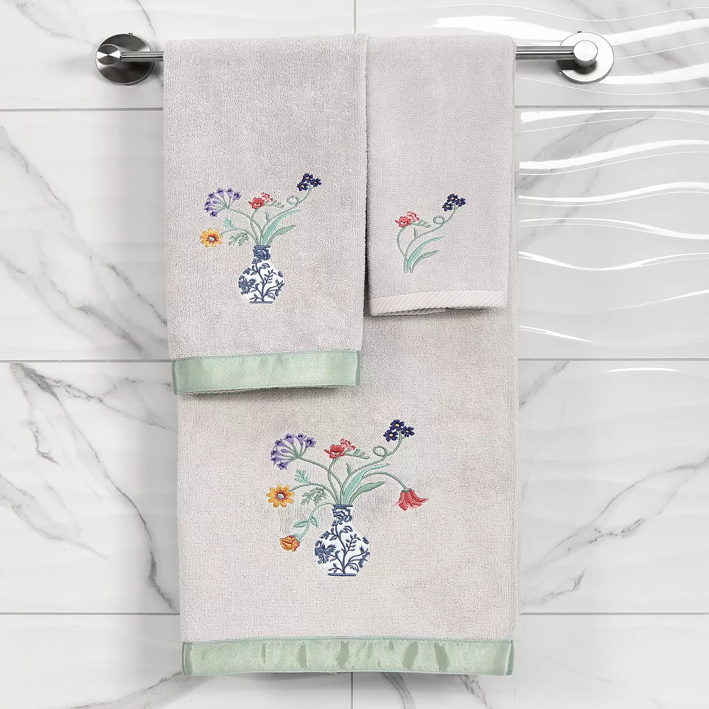 Add a refreshing touch to your space with this set of embellished bath towels from Linum Home textiles.