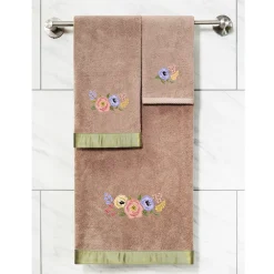 Bring out your inner designer and redefine the look and feel of your bathroom with this embellished towel set from Linum Home Textiles.