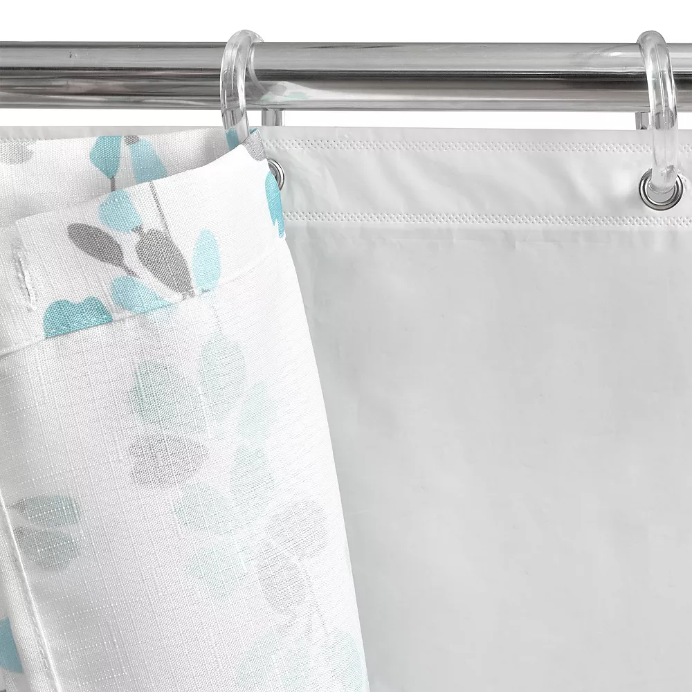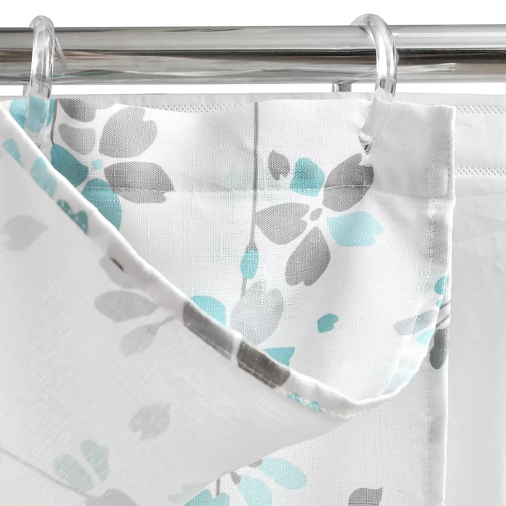- 16-piece set includes: 1 Shower Curtain, 1 Peva Liner, 12 Rings, 2 Tie Backs