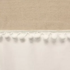 Beautiful linen fabric is lined with pom poms, perfect for lovers of simple and rustic style home decor with just the right amount of femininity.