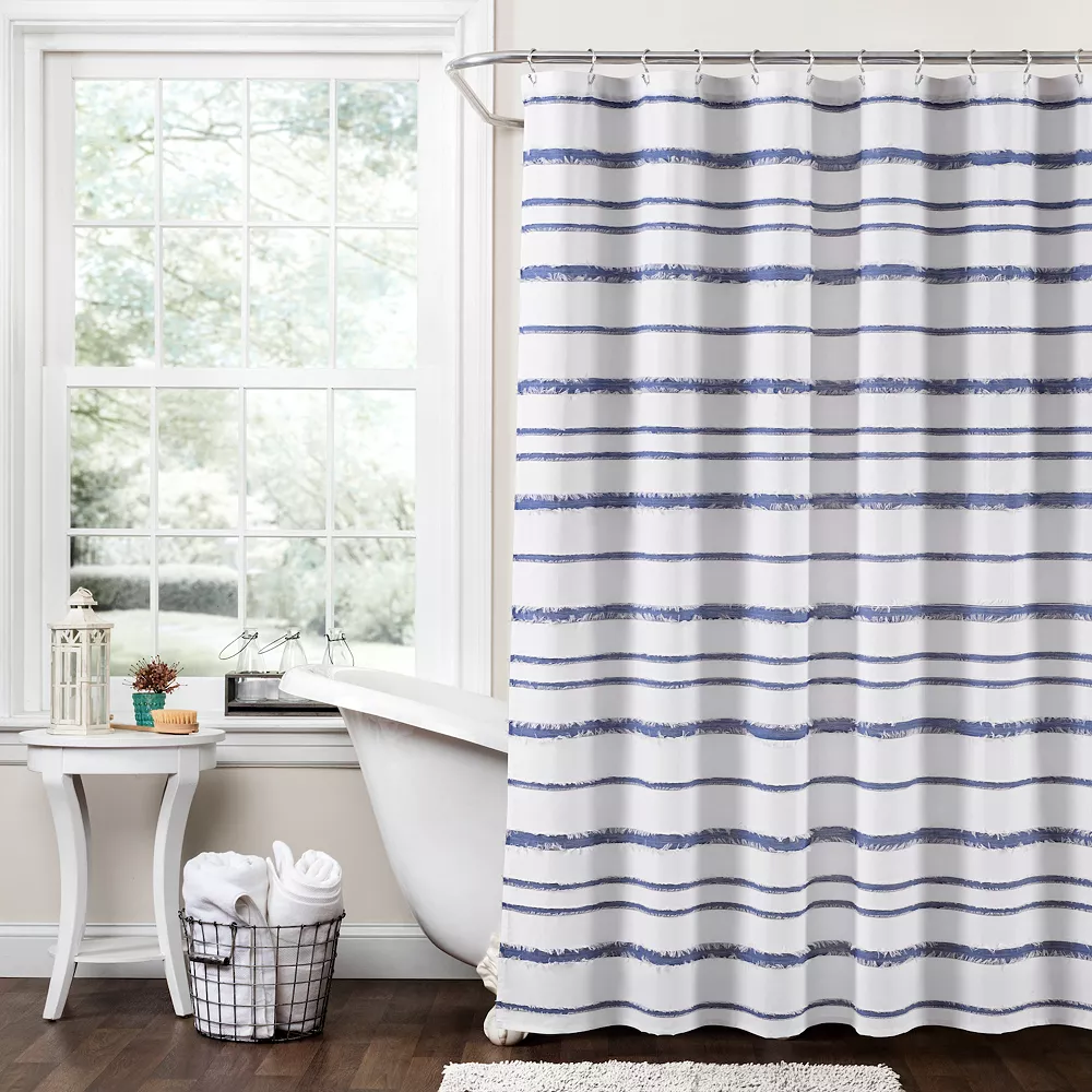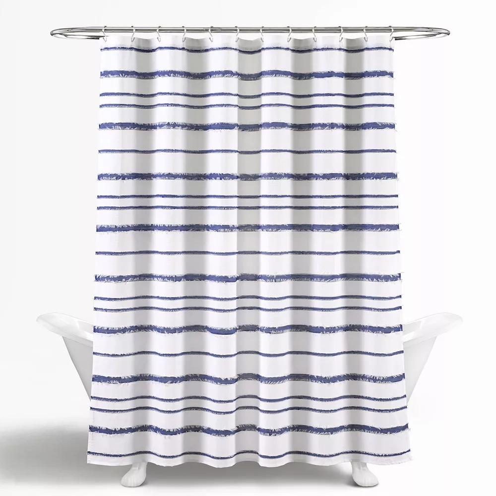 Create a fresh look and feel with this stylish Lush Decor Stripe Clip Jacquard Shower Curtain.