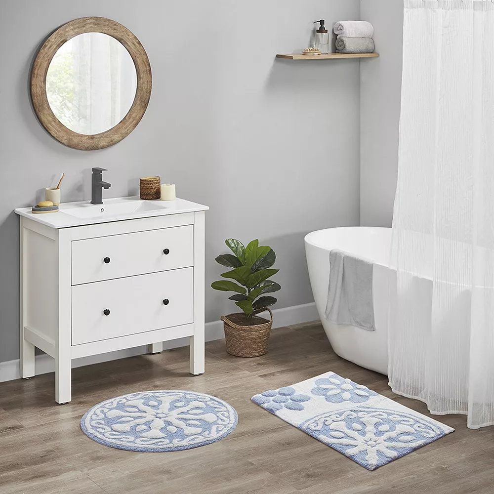 Give your bath a modern bohemian makeover with this Madison Park Marrakesh medallion cotton tufted bath rug.