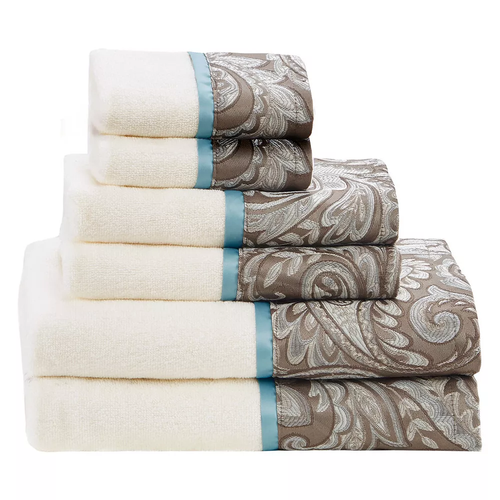 Easily add a stylish new look to your bathroom with this Madison Park Whitman jacquard towel set.