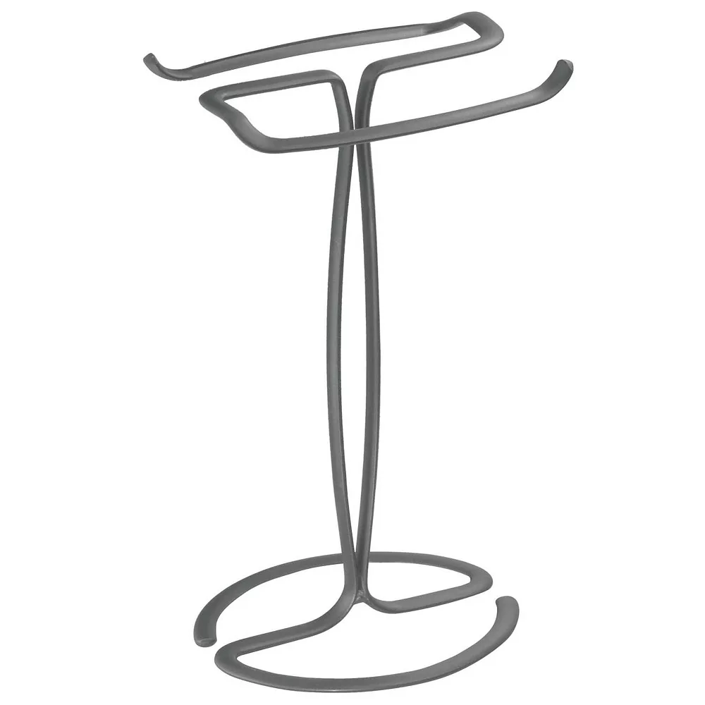 This Towel Holder by mDesign adds decorative style and useful functionality to the bath. Its free-standing design adds two sides of storage for fingertip towels without requiring any hardware or mounting to a wall or door. It features two open bars that make hanging towels on them quick and easy while creating a beautiful presentation.