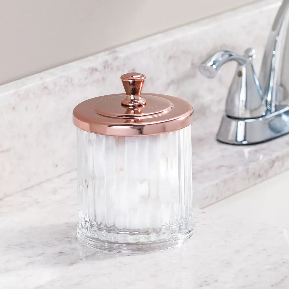 Keep cosmetics and other daily essentials organized on your bathroom vanity or a dresser top with the Bathroom Vanity Storage Organizer Canister from mDesign. Use these jars for everything from cotton balls to cosmetic wedges, makeup swabs, bath salts, bath bombs, small soaps and more. The classic styling and decorative lids add a touch of class anywhere they are used.