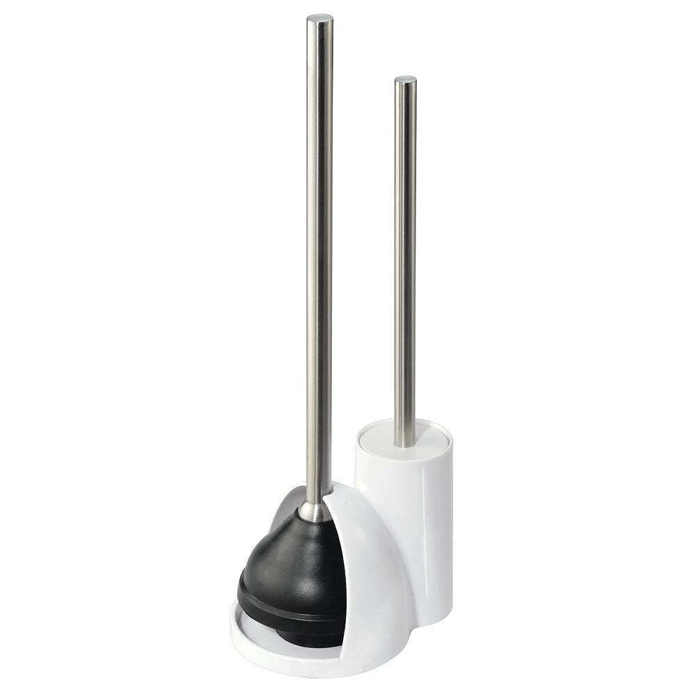 Keep your bathroom neat and clean with the Toilet Plunger and Bowl Brush Combo Set by mDesign. The heavy-duty plunger creates a tight seal to rid toilets, bathtub drains and kitchen sinks of clogs. Use the sturdy-bristled brush head to deep clean, even hard to reach places, for a lasting shine. The bowl brush and plunger fit neatly into the holder, making storage simple while keeping bathroom floors clean and dry. The compact design fits into even the smallest of bathroom spaces, making it easy to stash out of sight!