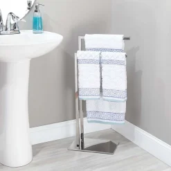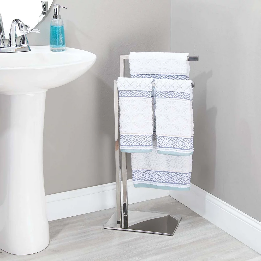 The mDesign Two Tier Towel Stand adds style and function to the modern bath. Create the look and feel of high-end hotel or spa with this simple and stylish piece of bathroom furniture. This functional piece adds necessary storage and elevates the bathroom decor. It features two bars that are placed at different levels to accommodate towels of many sizes and thicknesses. It is a great addition to a main or guest bathroom to ensure that fresh, clean towels are always at your fingertips.
