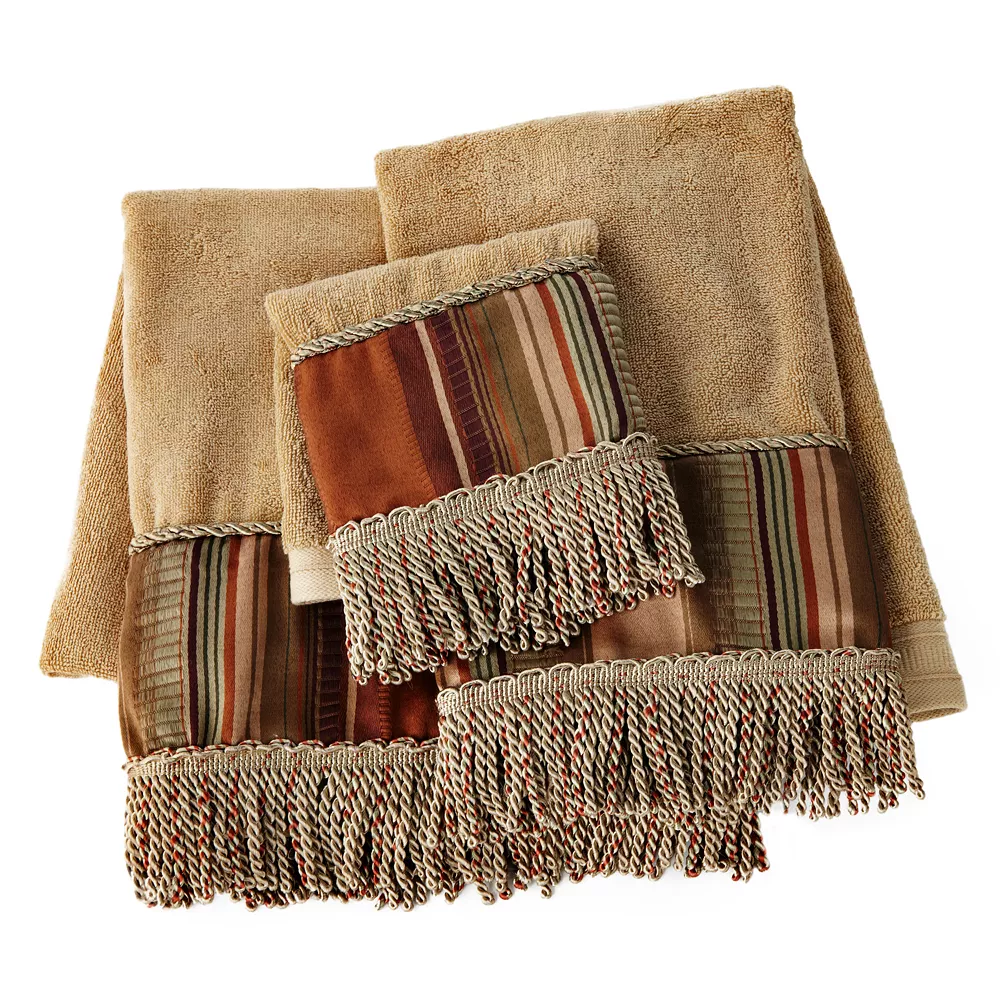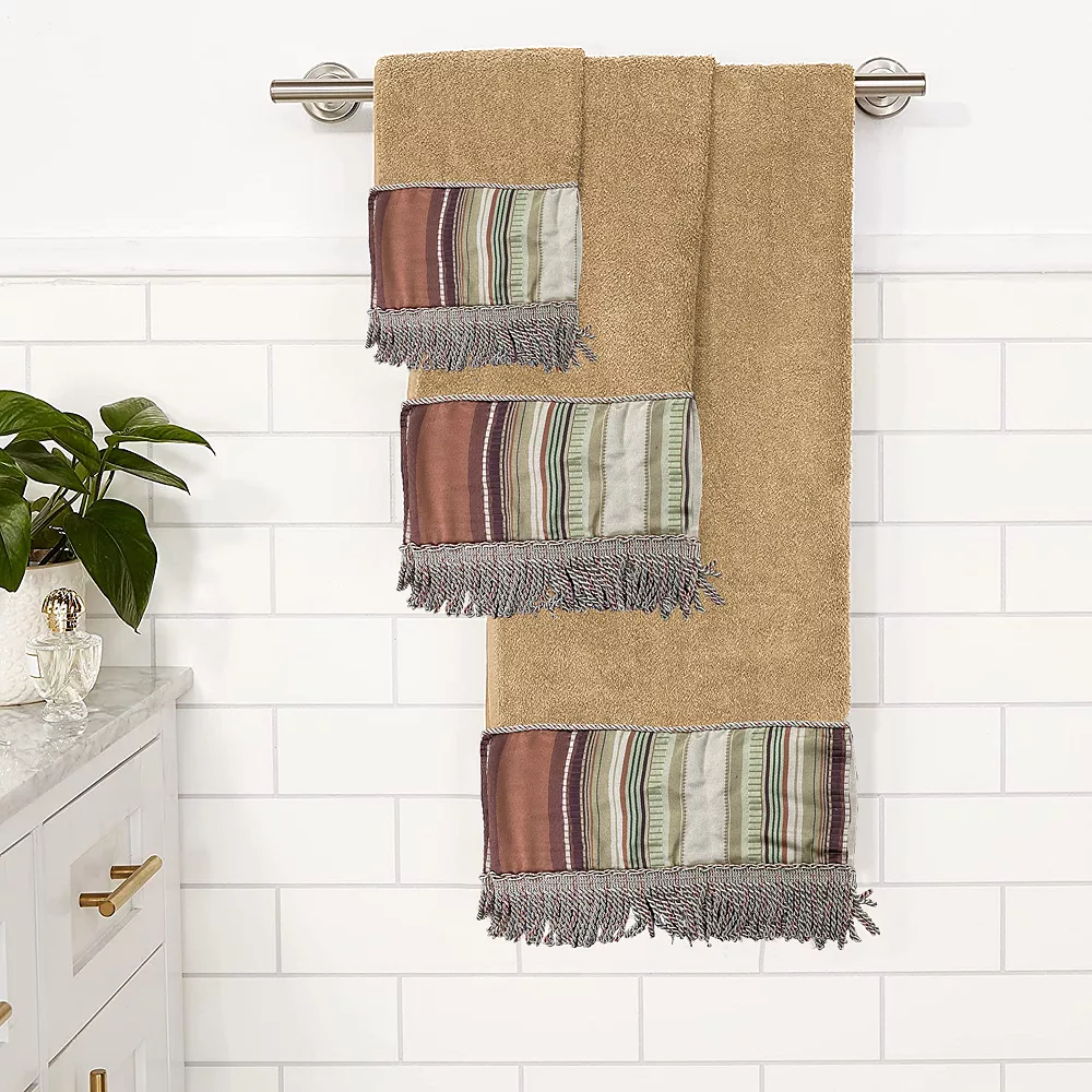 Bold doesn’t begin to describe Popular Bath towels. Colorful stripes and twisted fringe bring modern fashion to your bathroom decor. Go big with this Contempo bath towel set. In gold.