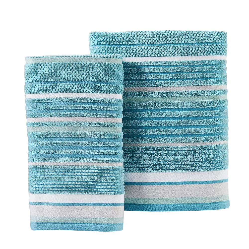 Keep your bathroom looking update with this Seabrooke stripe hand towel set.