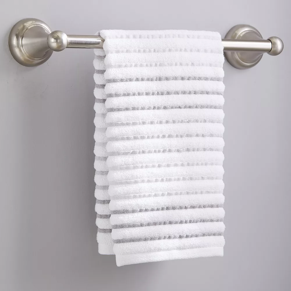 Adorn your bathroom with trendy style, thanks to this stripe hand towel set.