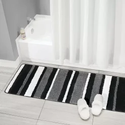 MDesign Striped Microfiber Polyester Rug, Non-Slip Spa Mat – Runner