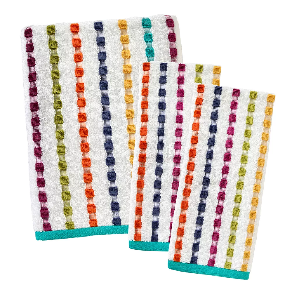 Bring on the “Good Vibes” and add some fun to the bath with this SKL Home Good Vibes 3-piece Bath & Hand Towel Set.