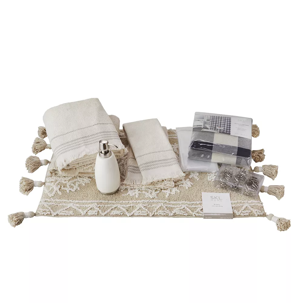 Elevate the look of your existing bathroom decor with this stylish splash box filled with bathroom accessories from SKL Home.