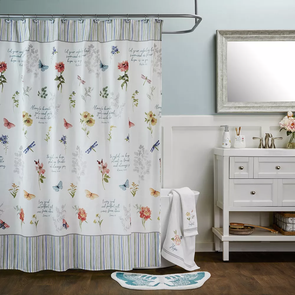 - Add inspiration and beauty to your bath with the Inspirational Meadows collection. This ceramic toothbrush holder features a raised floral design, colorful floral print and Romans 12:12 bible verse. It’s designed to hold most standard, manual or electric toothbrushes.